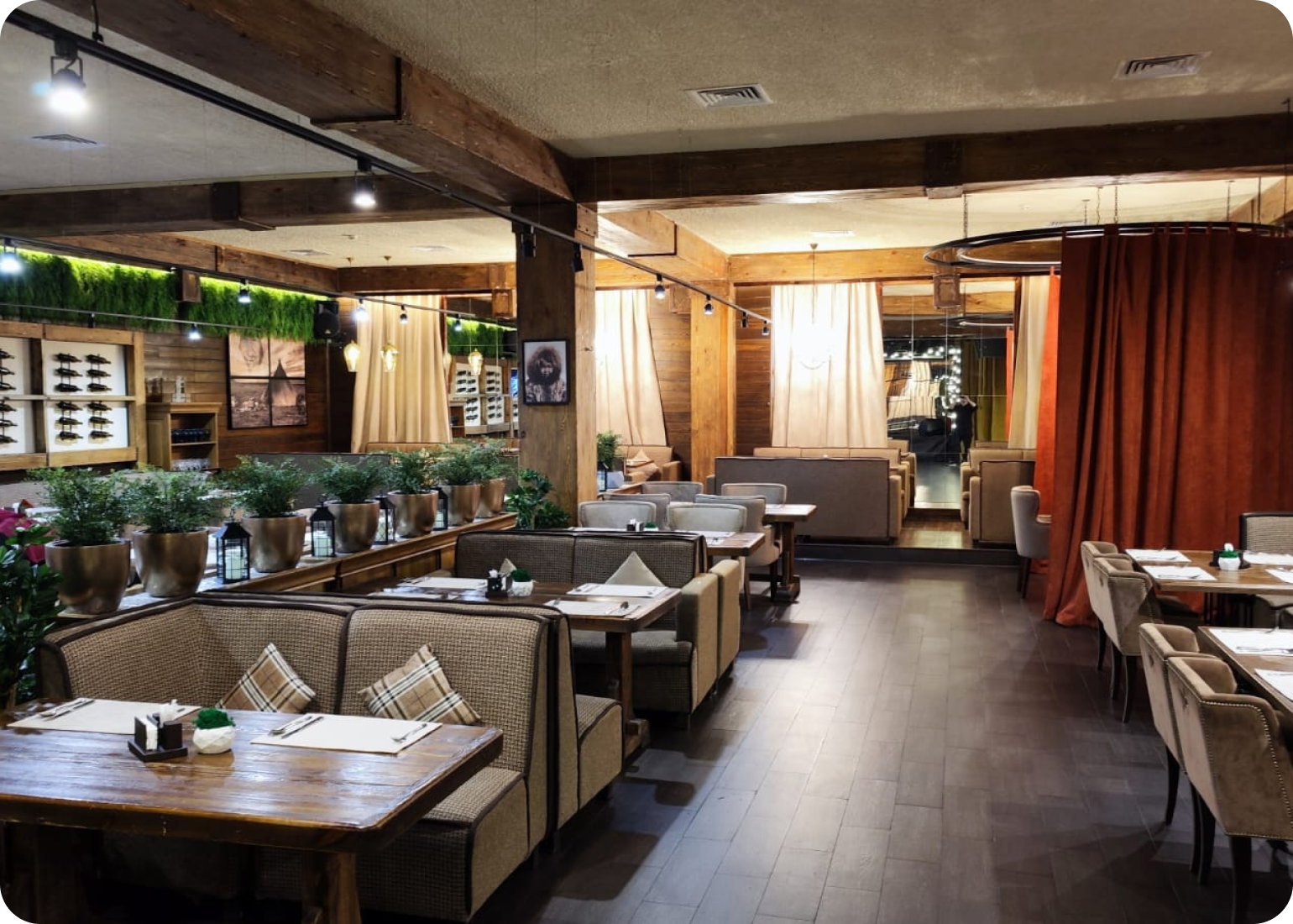 Наши блюда готовятся только из свежих ингредиентов, а наш гриль работает на древесных углях, что придает нашим блюдам неповторимый аромат и вкус.